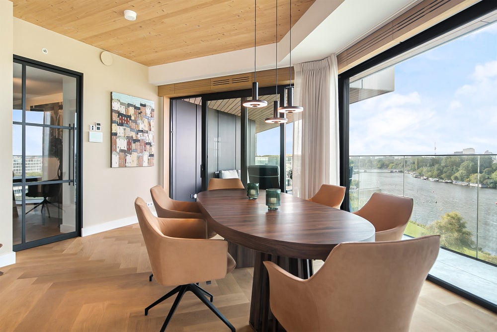 **UNIEK** prachtig **GEMEUBILEERD gasloos** appartement (ca. **155m2**, 2 badkamers en 6 zonnepanelen) met adembenemend **uitzicht over de AMSTEL** te huur! **INCLUSIEF XXL parkeerplaats (3,5 meter breed)** ondergronds!