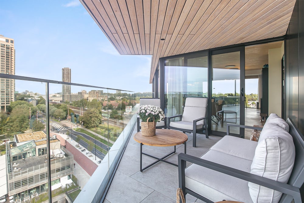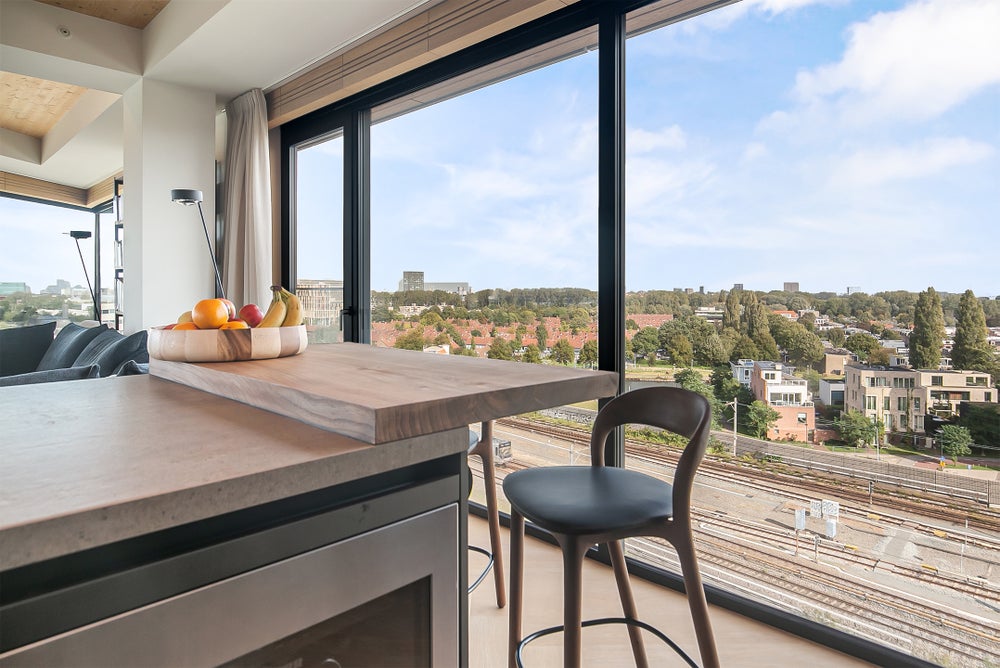 Het moderne gebouw is voornamelijk verwezenlijkt met hout als voornaamste bouwmateriaal waardoor het pand bijna stikstofneutraal is gerealiseerd. Terwijl HAUT prijzen heeft gewonnen voor zijn innovatieve houten constructie, biedt dit appartement een eigentijdse woonervaring op de 8e verdieping aan de zonnige kant van de Amstel.