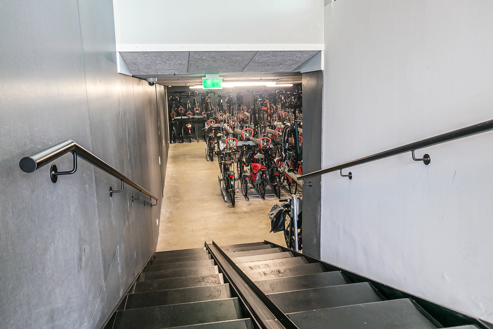 * Gemeenschappelijke **fietsenberging met elektrapunten**