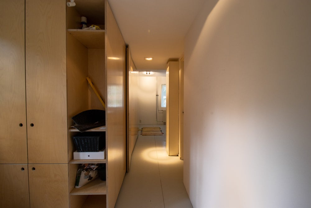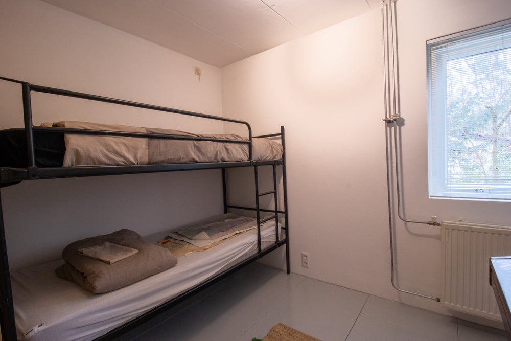 De woning is te betreden via de voordeur waarna u al direct de eerste kastruimte tegenkomt. Ook treft u rechts om de hoek de eerste slaapkamer aan. In deze slaapkamer zit tevens de wasmachine weggeborgen in een kast. Als we de hal doorlopen treffen we daar de 1e WC en 1e badkamer aan. Aan het einde van de hal is de 2e slaapkamer te vinden voorzien van een stapelbed én een piano voor de muzikale genieën onder ons.