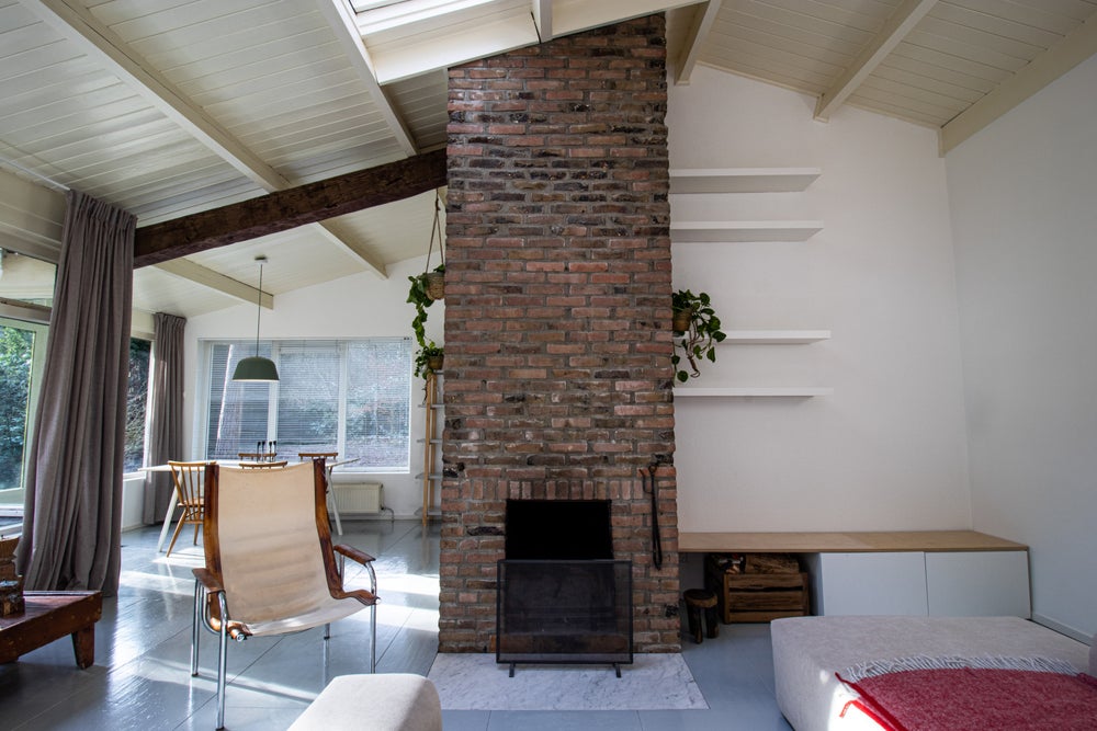 Halverwege de hal bevindt zich de deur naar de woonkamer. Hier valt gelijk het hoge plafond met ingebouwde raampartijen op. Ook de robuuste prachtig gebouwde stenen wand, waar de open haard in is weggewerkt, is een echte eyecatcher! De woonkamer is voorzien van alle gemakken waaronder een ruim bankstel, kastruimte, extra tafel met stoelen, prachtige eetkamertafel en een aparte zitstoel.