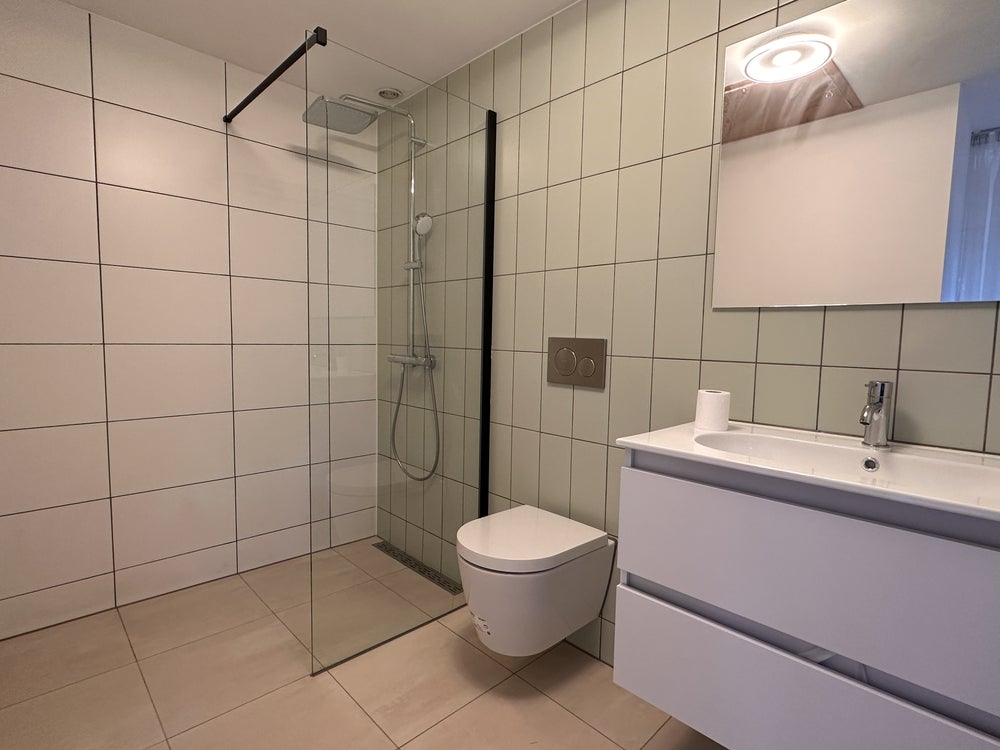 Vanuit de woonkamer stapt u zo in de grote masterbedroom, met tevens weer extra kastruimte. In deze slaapkamer kunt u heerlijk tot rust komen. In de ochtend wordt u wakker met het zicht op een mooi groen en kleurrijk bos. Wie wil dat nou niet? Vanuit de grote slaapkamer is het slechts een paar stappen naar de 2e badkamer. Deze is voorzien van een gloednieuwe douche, WC (de tweede) en een mooi wastafelmeubel. Ook is deze badkamer voorzien van een handdoekradiator en mechanische ventilatie.